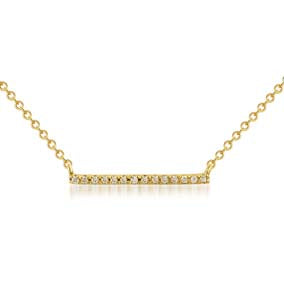 Micropave  white diamonds on a dangled on a 14k yellow or white gold chain make this bar necklace is a stunning piece for layering.