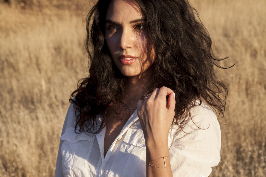 A transitional simple bracelet for from day to night. The vertical design of the bar adds a modern energy to any outfit.